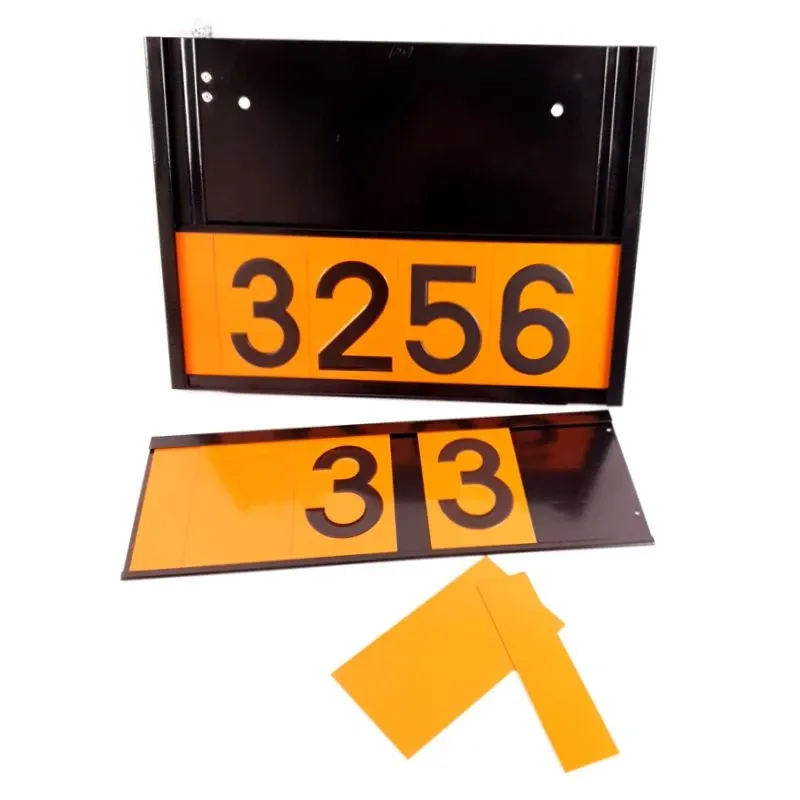Kezdőlap > Webáruház > Táblák és matricák > Veszélyesáru-szállítás > ADR-táblák > ADR/RID/ADN narancssárga tábla, komplett (cserélhető, 61 db számmal)
