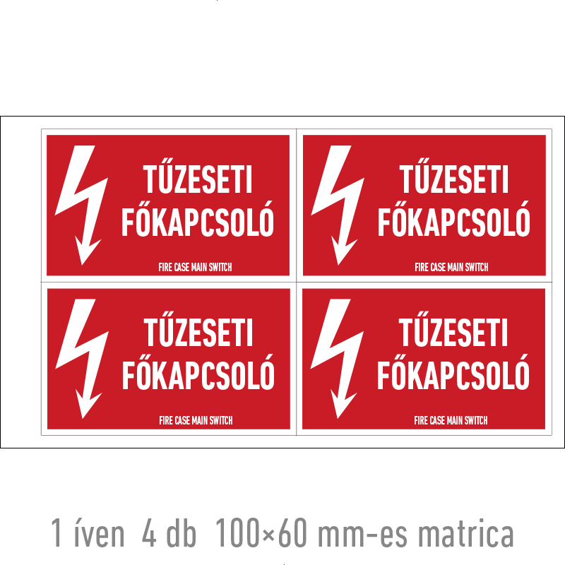 A villamossági és érintésvédelmi jelzések az elektromos áram veszélyeire illetve az elektromos berendezésekre és működtetésükre figyelmeztetnek. A „Tűzeseti főkapcsoló” a tűzeseti főkapcsoló helyét jelzi.