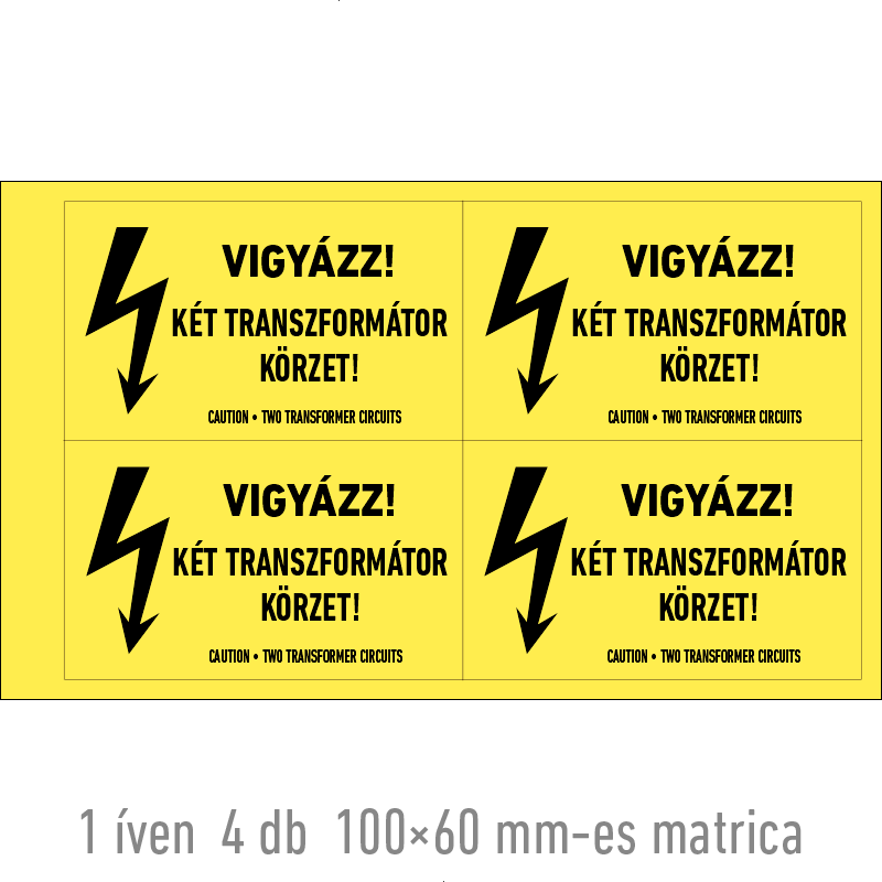Vigyázz! Két transzformátor körzet! matrica / tábla