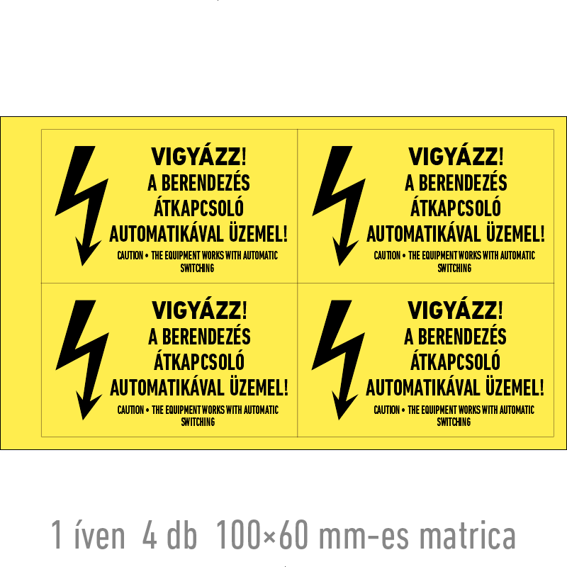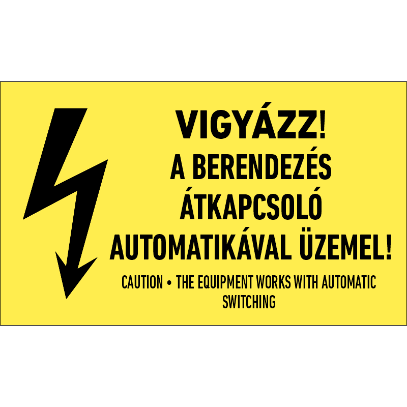 Vigyázz! A berendezés átkapcsoló automatikával üzemel! matrica / tábla