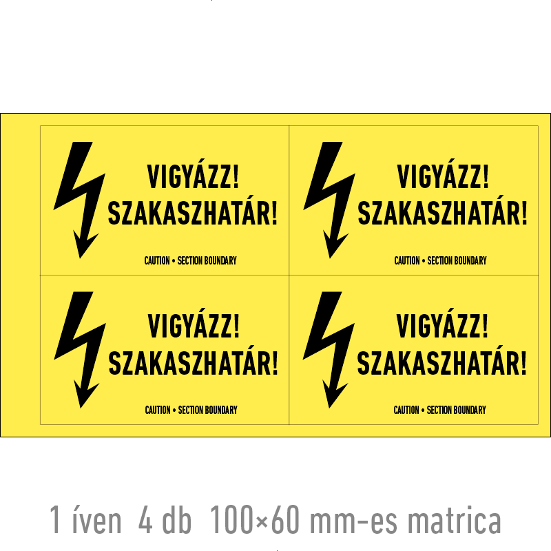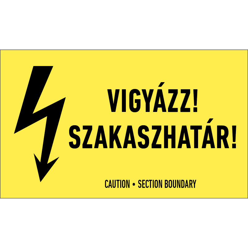 A villamossági és érintésvédelmi jelzések az elektromos áram veszélyeire illetve az elektromos berendezésekre és működtetésükre figyelmeztetnek. A „Vigyázz! Szakaszhatár!” a betáplálási szakasz határára figyelmeztet.