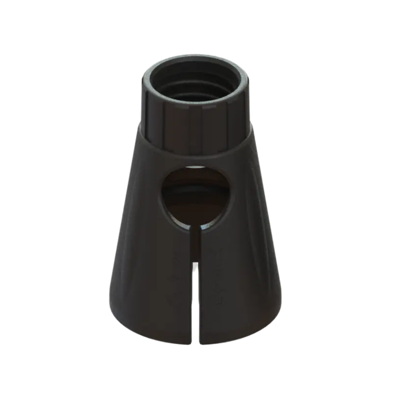 » Kúpos kialakítású csatlakozó elem, amely műanyag figyelmeztető táblák és kúplámpák rögzítésére szolgál. » A felső rész menetes kialakítása lehetővé teszi a táblák és lámpák stabil és biztonságos rögzítését. » A testen elhelyezett kerek furat és lefelé nyúló rész további rögzítési pontokat biztosít a szereléshez. » Tartós, időjárásálló műanyagból készült, amely ellenáll a külső hatásoknak és hosszú élettartamot garantál. » Kompatibilis minden szabványos forgalomterelő kúppal, megkönnyítve a figyelmeztető kiegészítők gyors és stabil felszerelését.
