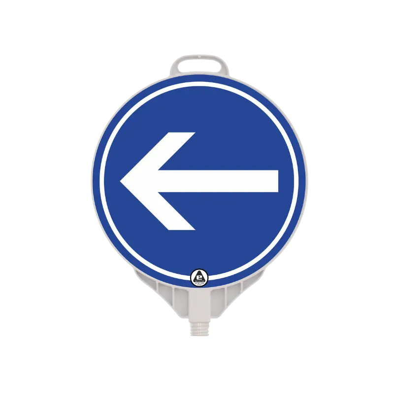 » Kék háttérrel és fehér nyíllal ellátott tábla, amely balra irányítja a forgalmat vagy a közlekedőket. » Kétirányú figyelmeztető funkcióval rendelkezik, így mindkét oldalról jól látható. » Tartós, mégis könnyű műanyagból készült, ami biztosítja a hosszú élettartamot és az egyszerű kezelhetőséget.