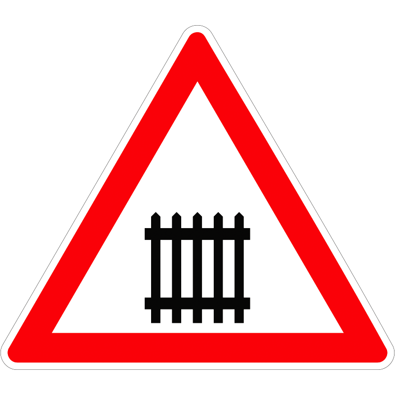 Sorompóval biztosított vasúti átjáró KRESZ közlekedési tábla