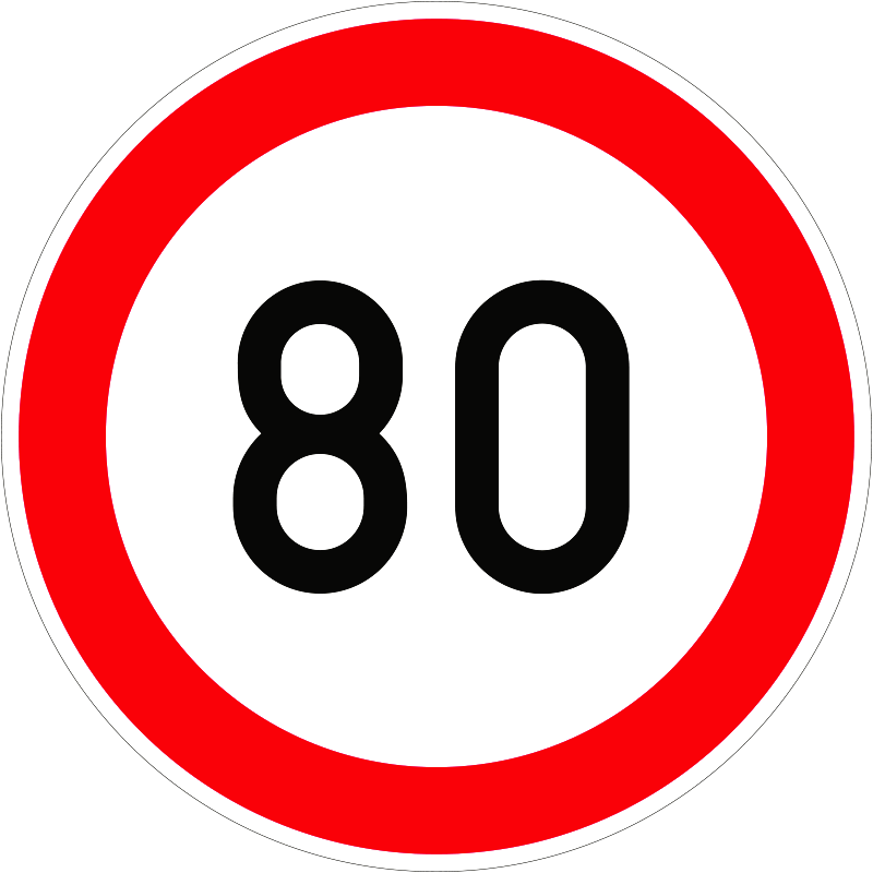 Sebességkorlátozás 80 km/h KRESZ közlekedési tábla