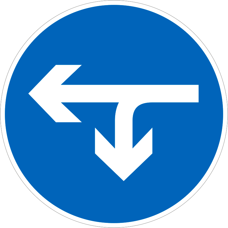 Kötelező haladási irány (balra és megfordulás) KRESZ közlekedési tábla