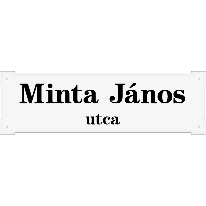 Utcanévtábla domborított, bástyasarkú, fehér, 700×215 mm