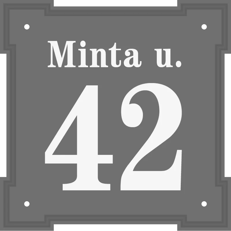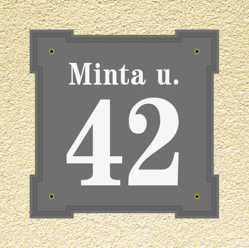 Házszámtábla domborított, bástyasarkú, szürke, 215×215 mm