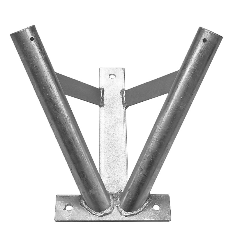 Épülethomlokzatra rögzíthető 2 ágú horganyzott zászlótartó, a rúdtartó belső átmérője: 30 mm. Mérete kompatibilis az általunk forgalmazott zászlórudakkal.