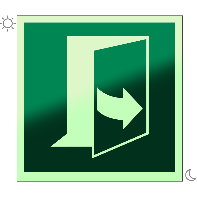 A biztonsági jelzések közül kiemelt fontosságúak a menekülési utakat jelölők. Minden ilyen termékünk sötétben utánvilágító kivitelben is készül. A „Nyitáshoz húzza az ajtó bal oldalát!” az ajtó nyitásának módját jelző zöld lapon fehér piktogram.