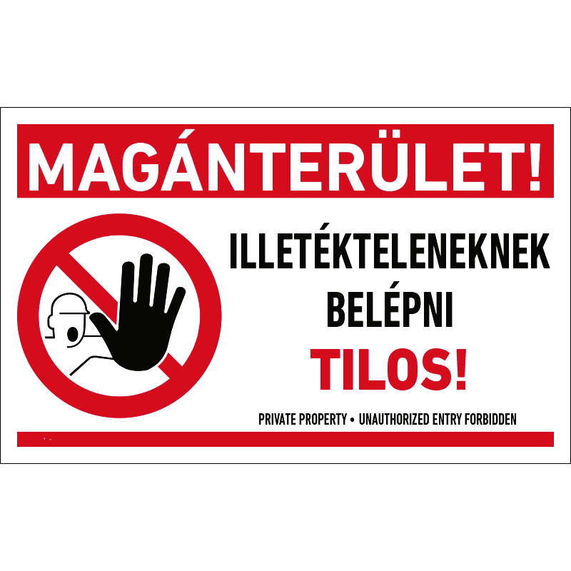 A „Magánterület – Illetékteleneknek belépni tilos!” a magánterületre történő belépést tiltó piktogram+felirat.