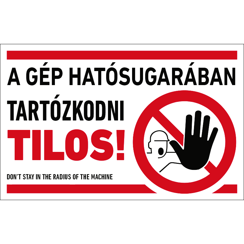 A gép hatósugarában tartózkodni tilos! matrica / tábla (piktogram + felirat)