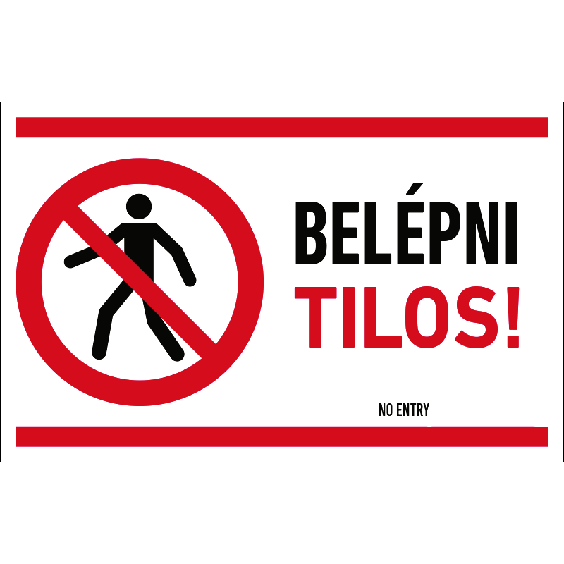 A tiltó jelzések a biztonságot és az egészséget veszélyeztető magatartást tiltanak, valamint figyelmeztetnek a veszélyforrásra. A „Belépni tilos!” a helyiségbe vagy a területre történő belépést tiltó piktogram+felirat.